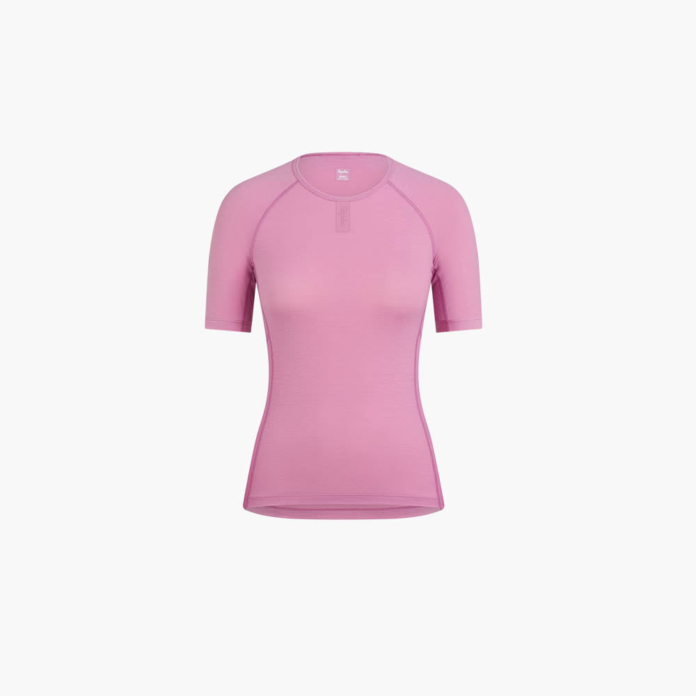 The Rapha Women's Merino Short Sleeve Base Layer Dusty Mauve is a breathable and versatile merino undershirt, usable all year round in varying conditions.