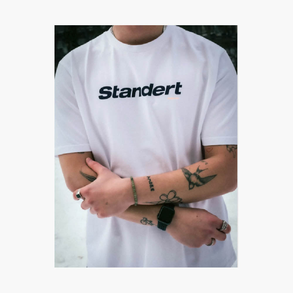 The Standert Performance Logo MY 24 White T-Shirt is unisex and has a boxy fit. It is made from 100% organic cotton and is very thick and durable. It has been pre-shrunk.