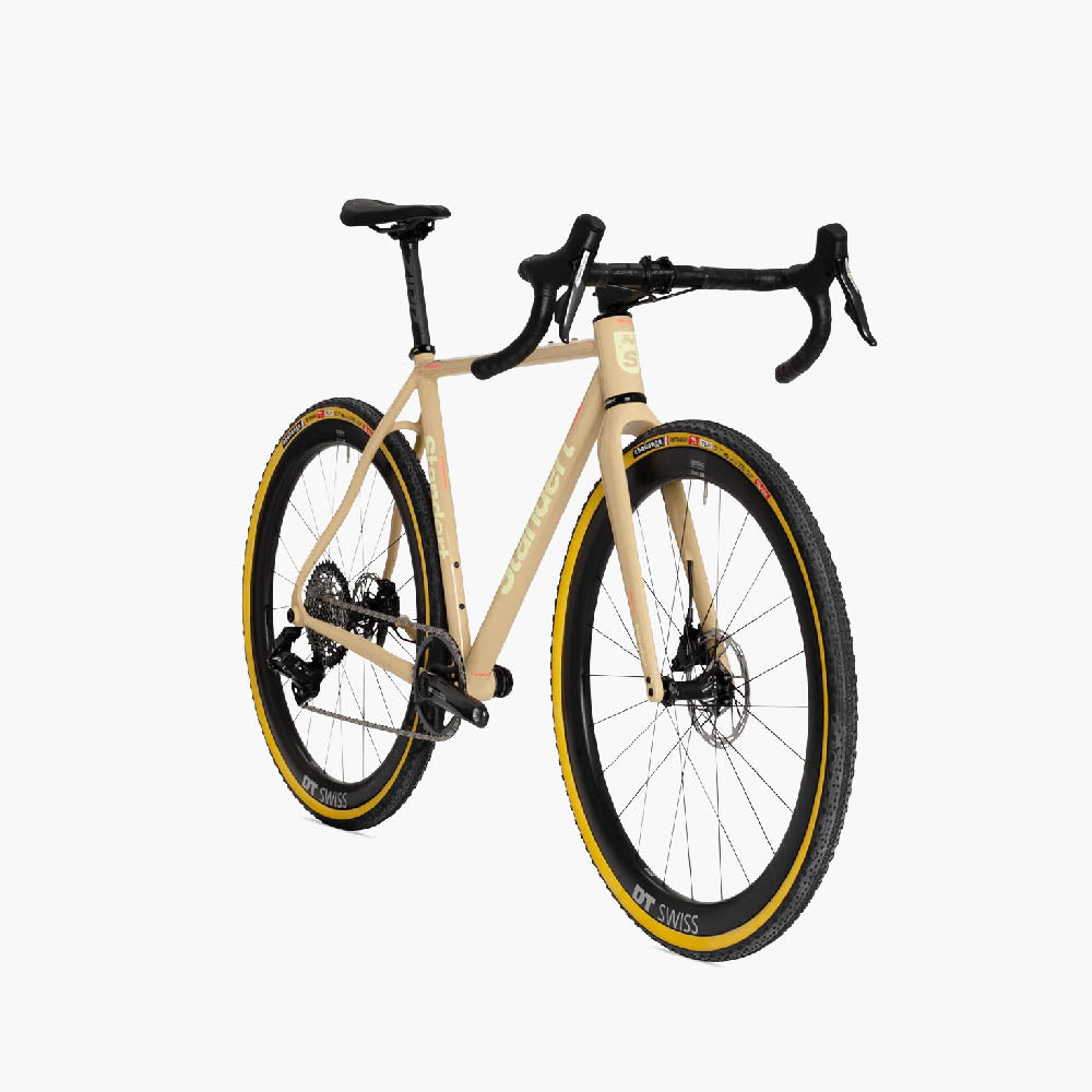 It is made in Italy from lightweight and high-performance Dedacciai Aegis aluminum tubing. Its tire clearance allows for the mounting of 700cc wheels up to 45mm in diameter. The Kettensäge boasts technical advantages such as SLT CeramicSpeed bearings and a UDH (Universal Derailleur Hanger), as well as pannier mounts on the top tube. All of this has been designed to optimize efficiency and extend your journey or race without stopping.The Standert Kettensäge Caramel size 54 is the ultimate gravel bike with the racing DNA of the Kreissäge RS and its integrated cable