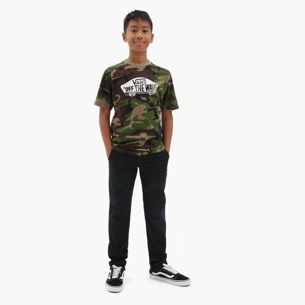 The Vans Kids' OTW Black Boys' T-Shirt is a boys' t-shirt with the iconic Vans Off The Wall logo on the chest.