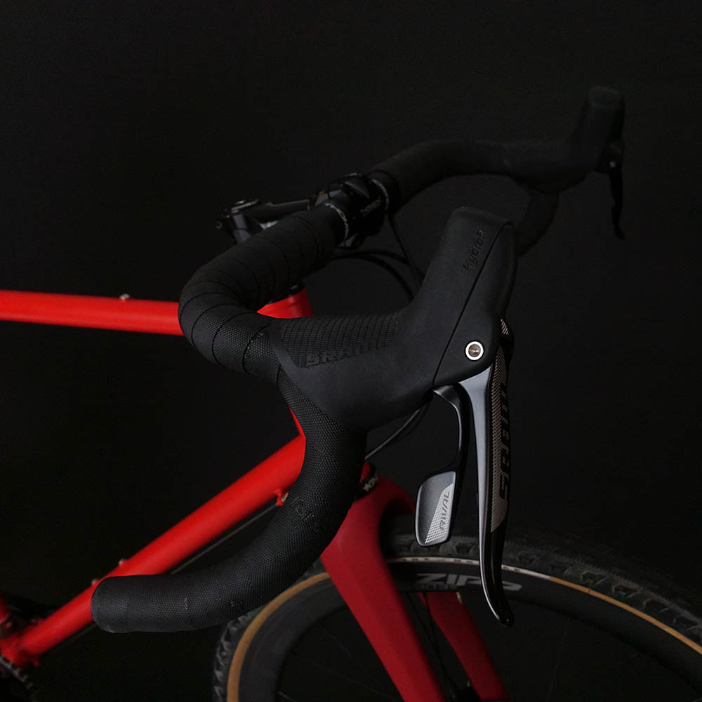 Le cadre est plus allongé, plus ample. Il a été crée pour accompagner un cycliste de grande taille souhaitant rouler droit, posé et longtemps. Toutefois rien ne l'empêchera de foncer ou d'attaquer bosses et montagnes, sublimé par cette couleur chaude et vive inspirée des terres rouges de l'Esterel.