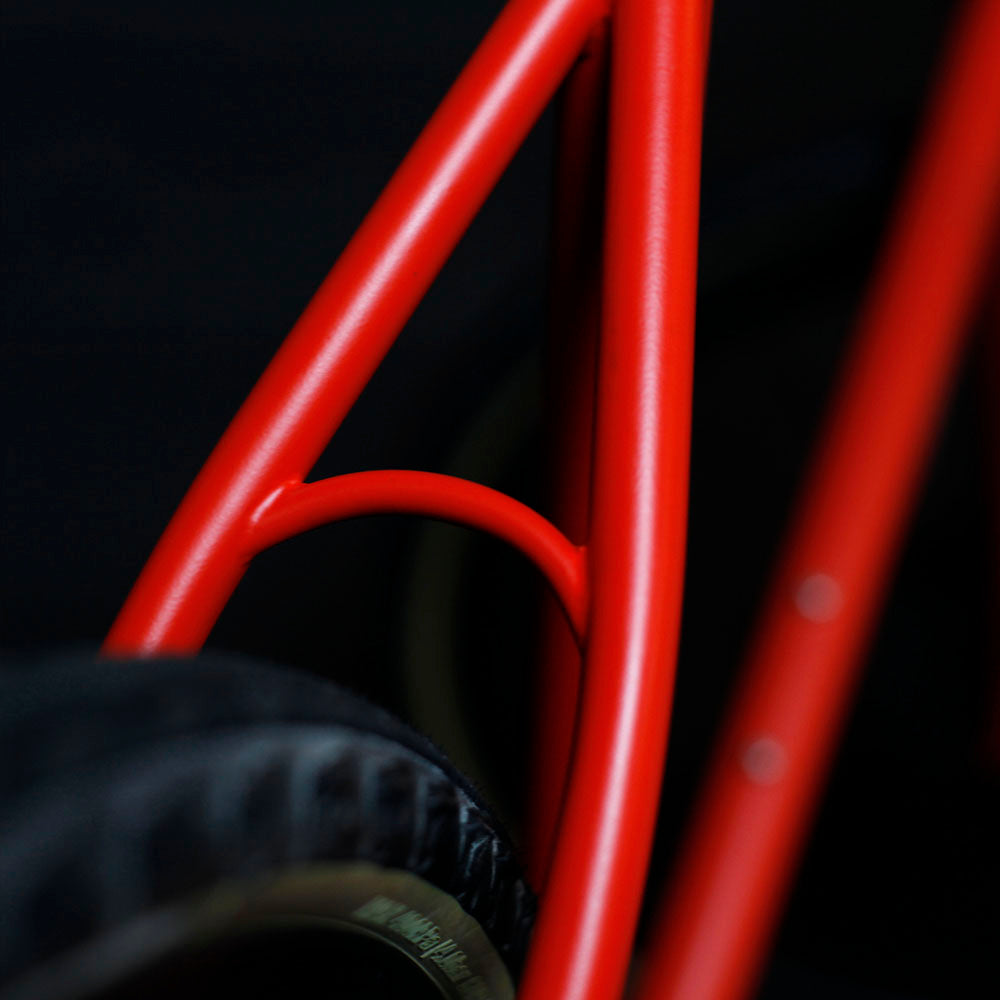 Pour justifier son style et son aspect visuel non négligeable, l'inspiration de ses détails néo-rétro tels que passage de cable et butées et guides, provient de cadreurs de vélos sur-mesures référent.