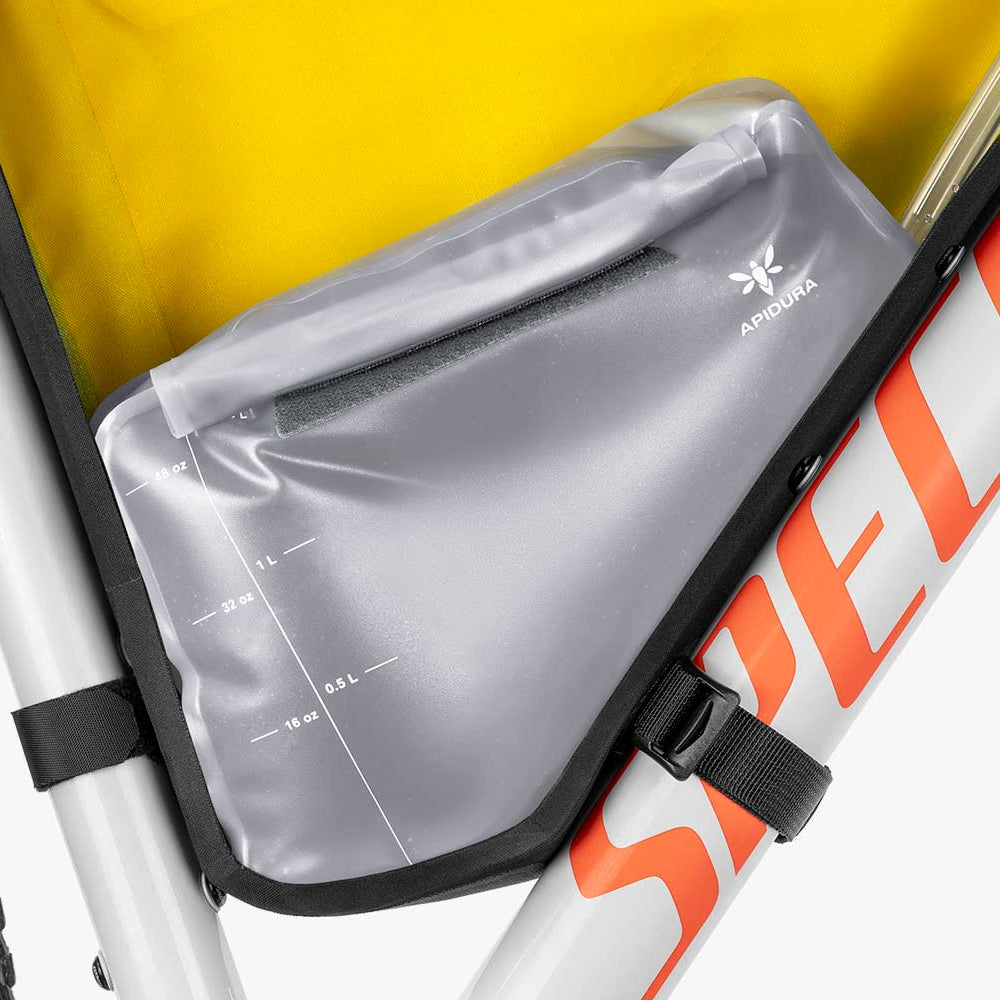 Le Apidura Frame Pack Hydratation Bladder 1,5L est moyen le plus efficace de transporter de l'eau dans un Frame Pack complet.Le Frame Pack est une solution pratique pour transporter de l'eau lorsque vous n'avez pas de place pour les porte-bidons dans le triangle principal de votre vélo. D'une capacité de 1,5 litres, il est facile à remplir. En tant que premier sac d'hydratation spécifique aux sacoches de cadre, il utilise efficacement l'espace, de sorte que vous n'avez pas besoin de faire de compromis entre le transport de l'eau et d'autres éléments essentiels. Le Frame Pack est compatible avec tous les sacs Apidura Full Frame Packs et les sacs de taille similaire, avec un tuyau détachable de 1,2 m de long conçu pour boire pendant votre aventure.