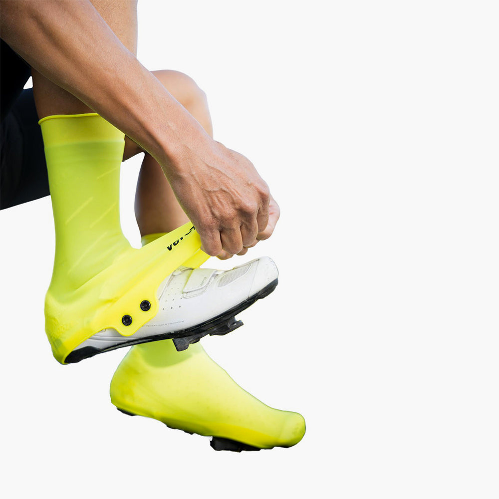 Les Velotoze couvre-chaussures Route Silicone Pression Noir sont des couvre-chaussures étanches en silicone adaptées aux chaussures de vélo de route, pour une utilisation par temps froid, pluvieux ou neigeux.